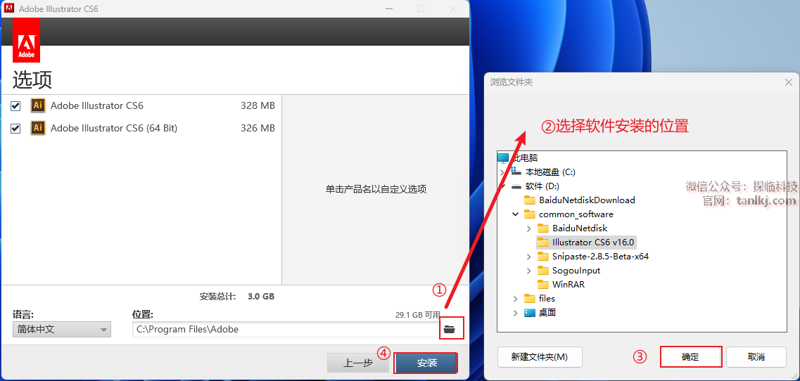 ②选择软件安装的位置;