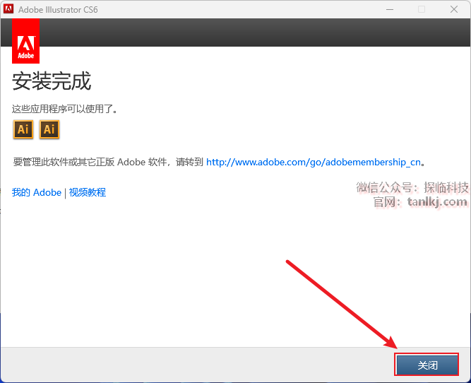 安装完成后,点击【关闭】。
