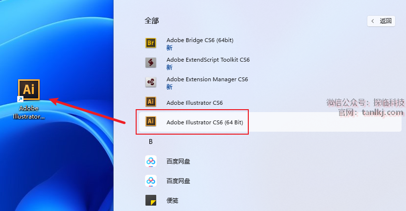 找到软件【Adobe Illustrator CS6(64 Bit)】,将其拖至桌面创建快捷方式。