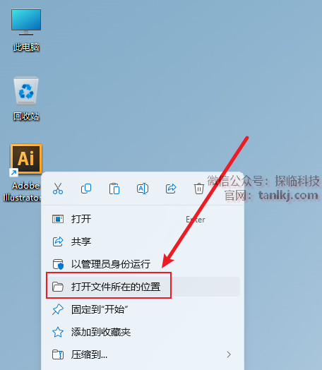 在桌面,右键软件【Adobe Illustrator CS6(64 Bit)】,点击【打开文件所在的位置】。