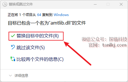 点击【替换目标中的文件】。