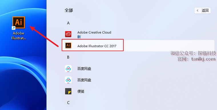①软件栏中选择【Adobe Illustrator CC 2017】;