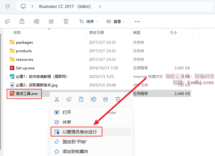 打开之前解压后的文件夹,右键程序【激活工具】,点击【以管理员身份运行】。