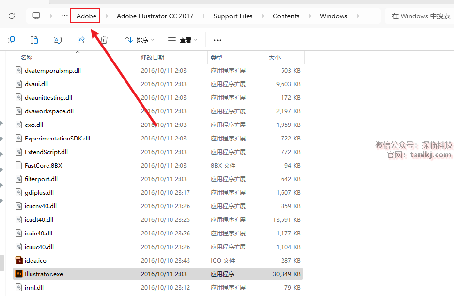 在弹出来的文件夹内,点击上方地址栏中的【Adobe】。