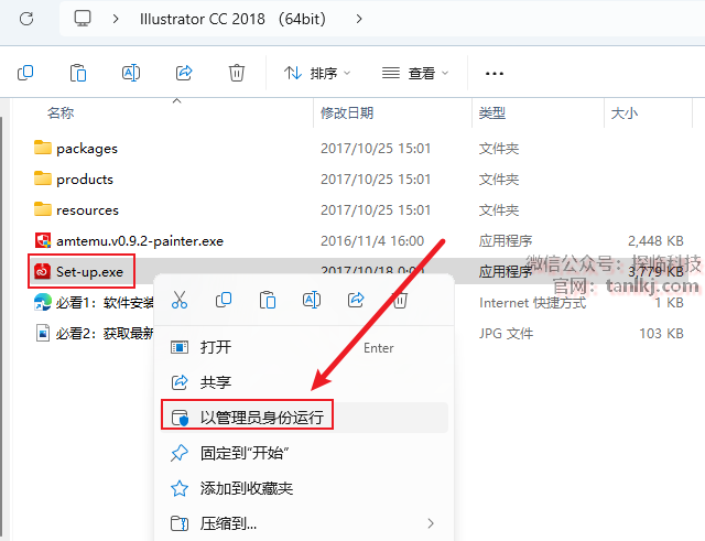 打开解压后的文件夹,右键安装程序【Set-up】,点击【以管理员身份运行】。