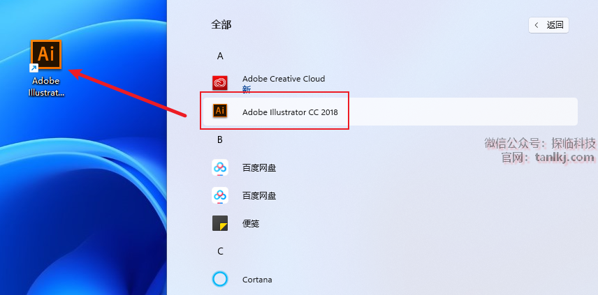 找到软件【Adobe Illustrator CC 2018】,将其拖至桌面创建快捷方式。