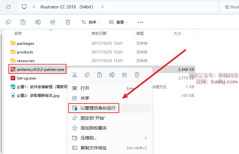 打开之前解压后的文件夹,右键程序【amtemu.v0.9.2】,点击【以管理员身份运行】。