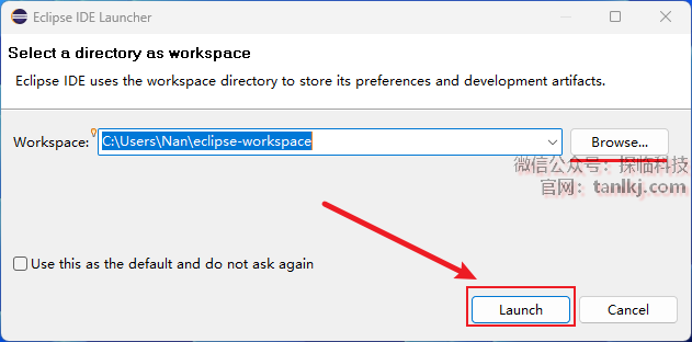 点击【Browse】,可以更改工作空间位置,点击【Launch】。