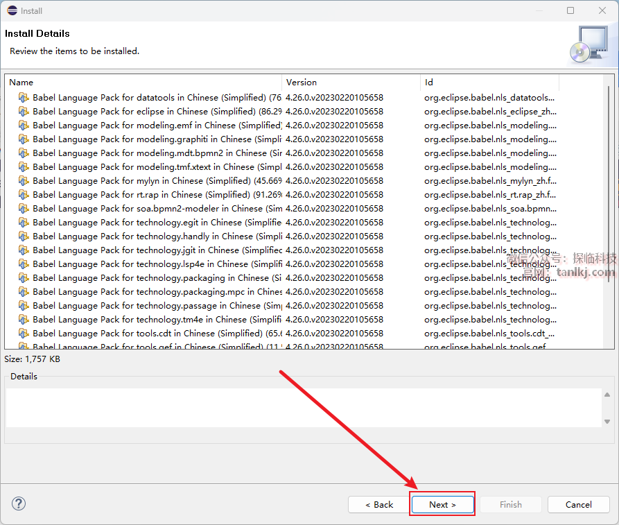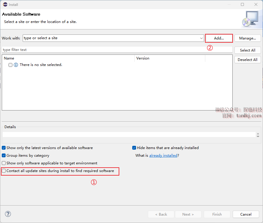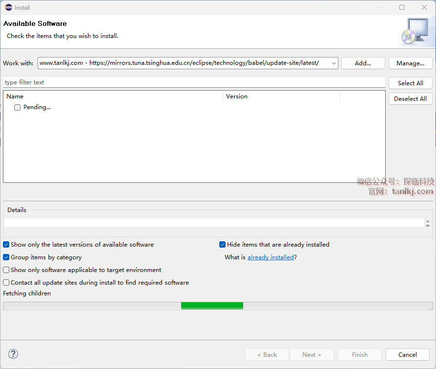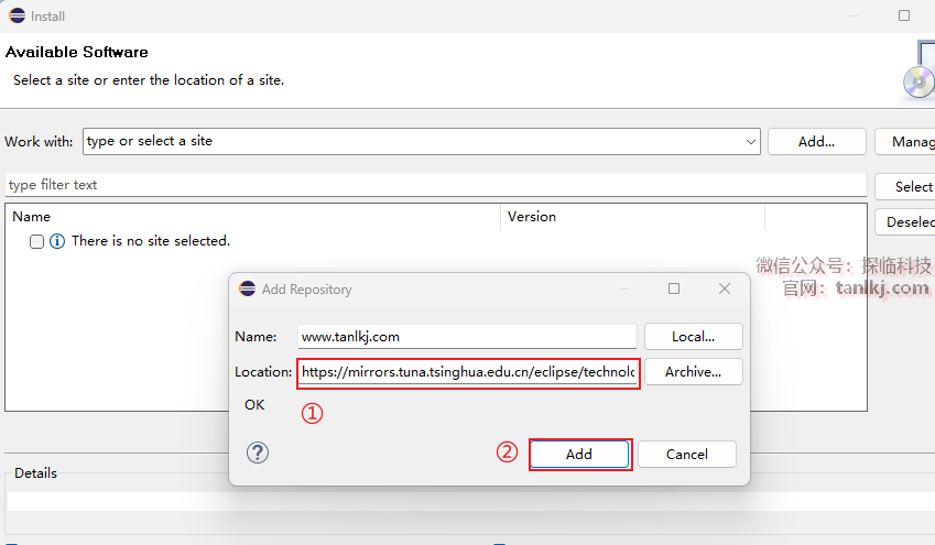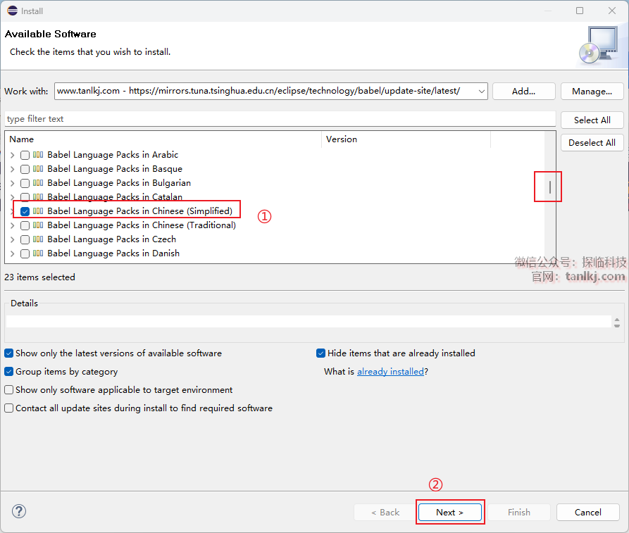 ①Location框中输入:https://mirrors.tuna.tsinghua.edu.cn/eclipse/technology/babel/update-site/latest/