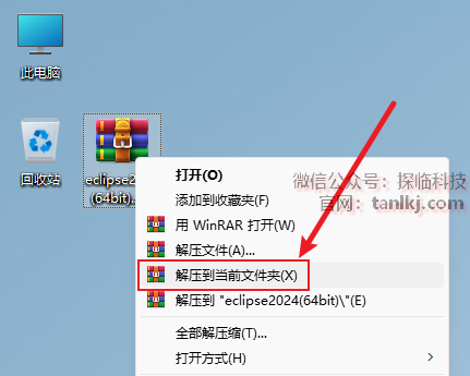 解压下载后的软件包。右键软件包,点击【解压到当前文件夹】(win11系统需先点击【显示更多选项】)。 (未安装解压软件可以点击此处查看:如何安装解压软件?)