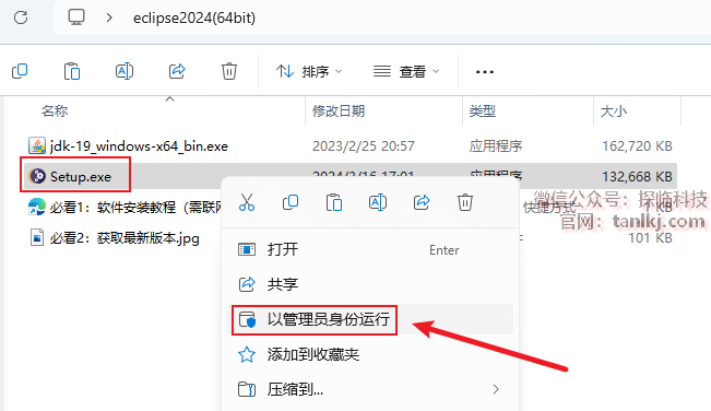 打开之前解压后的文件夹,右键程序【Setup】,点击【以管理员身份运行】。