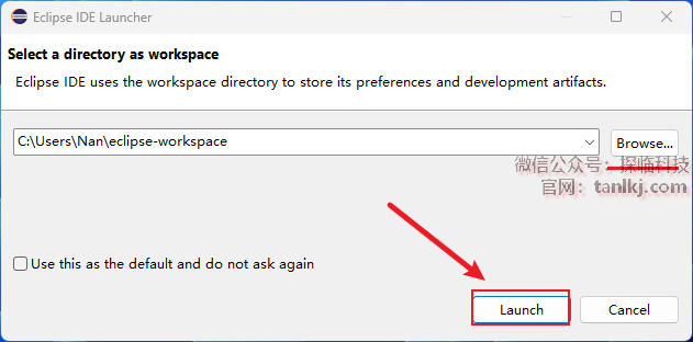 点击【Browse】,可以更改工作空间位置,点击【Launch】。