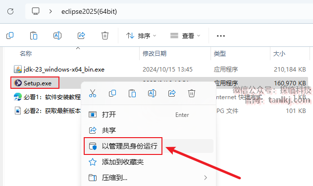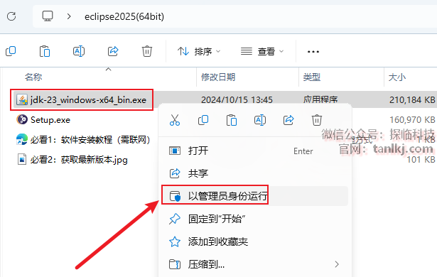打开解压后的文件夹,右键程序【jdk-23…】,点击【以管理员身份运行】。