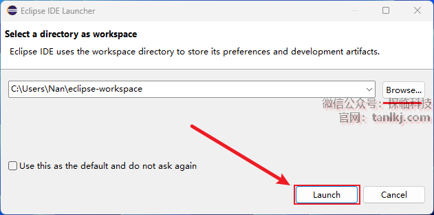 点击【Browse】,可以更改工作空间位置,点击【Launch】。