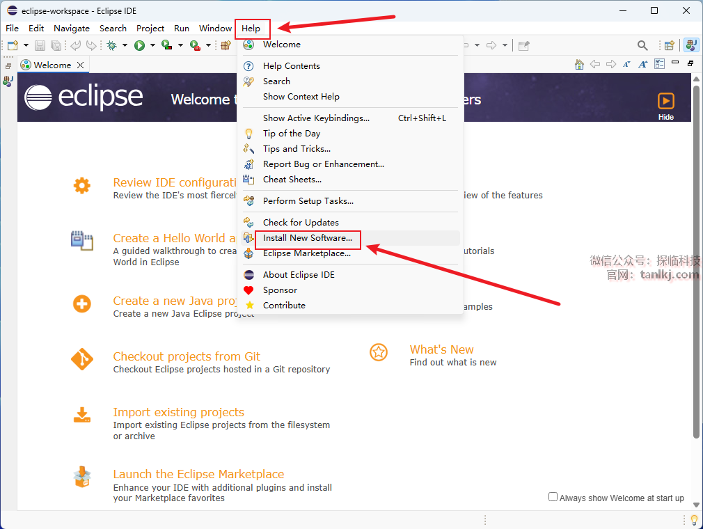 点击【Help】,点击【Install New Software】。