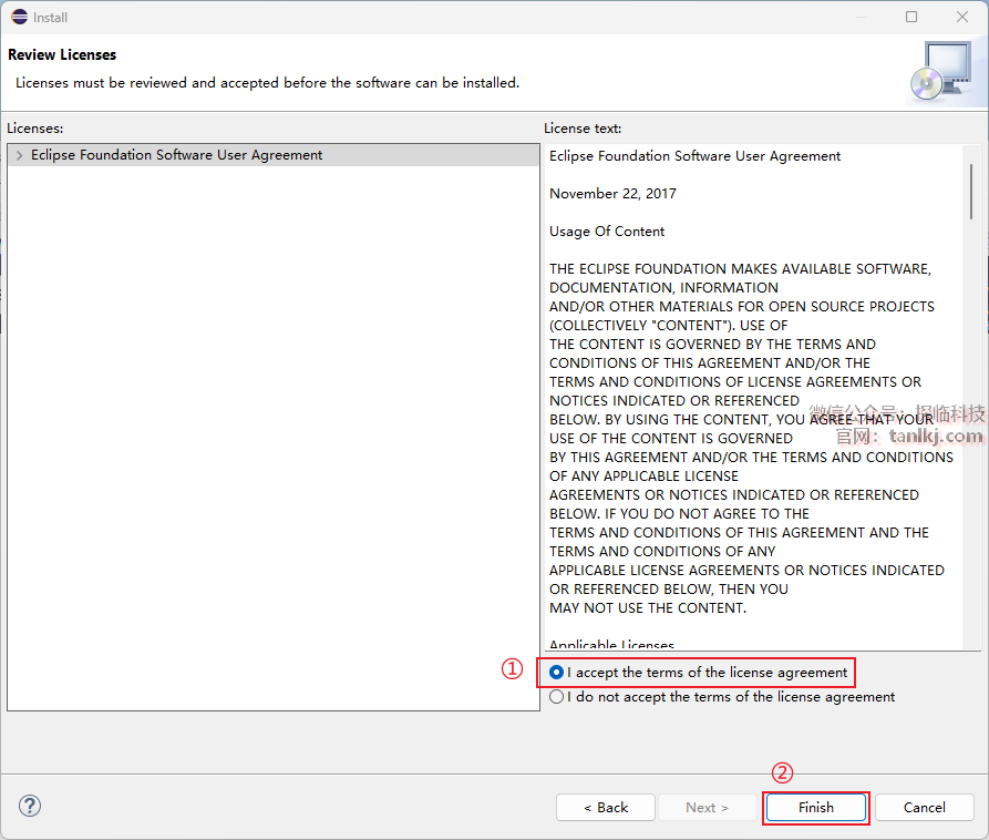 ①勾选【I accept the terms of the license agreement】;