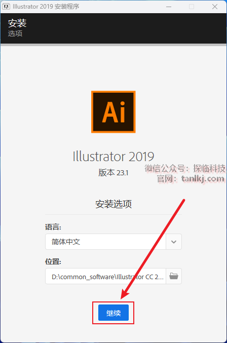 更改软件默认的安装位置,如不需更改,直接点击【继续】即可。