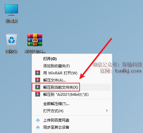 解压下载后的软件包。右键软件包,点击【解压到当前文件夹】(win11系统需先点击【显示更多选项】)。 (未安装解压软件可以点击此处查看:如何安装解压软件?)