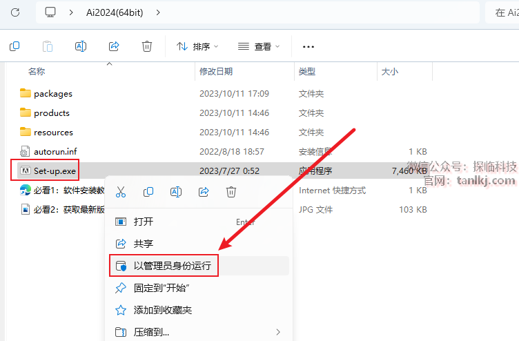 打开解压后的文件夹,右键安装程序【Set-up】,点击【以管理员身份运行】。