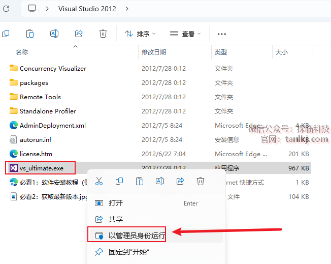 打开解压后的文件夹,右键程序【vs_ultimate】,点击【以管理员身份运行】。