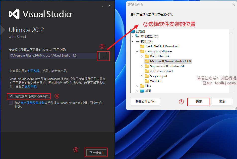 ④勾选【我同意许可条款和条件】;
