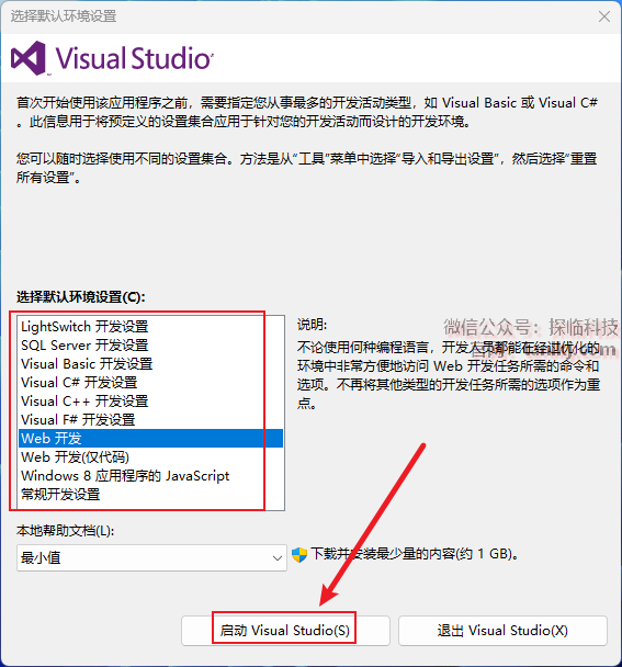 选择需要的开发环境,点击【启动Visual Studio】。