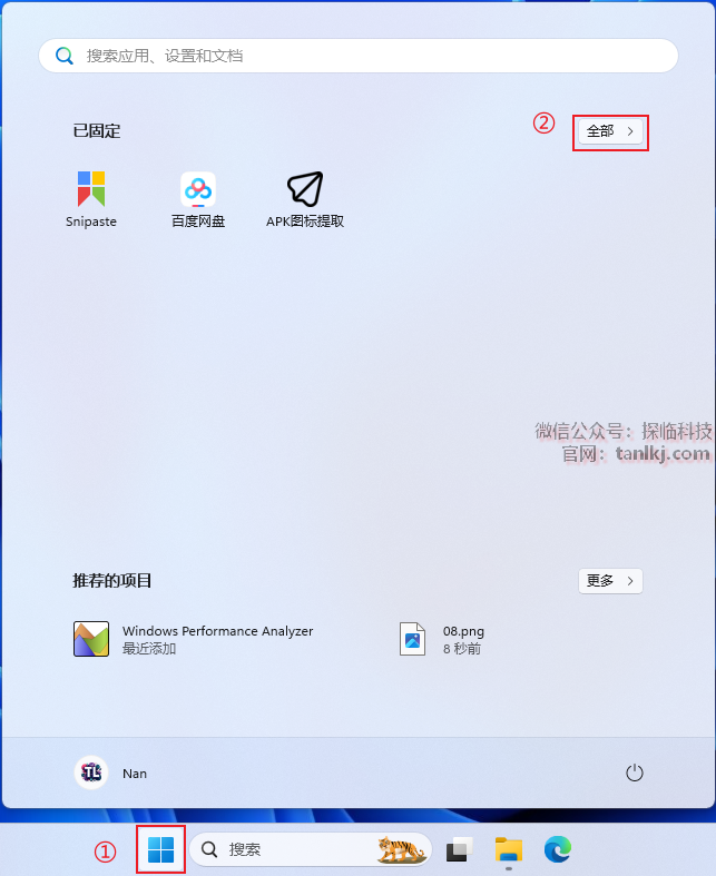 ①点击【开始】图标;