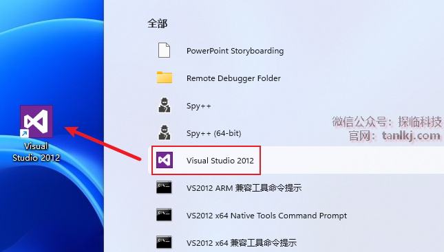 找到软件【Visual Studio 2012】,并将其拖至桌面创建快捷方式。