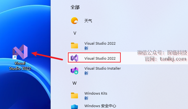 找到软件【Visual Studio 2022】,并将其拖至桌面创建快捷方式。