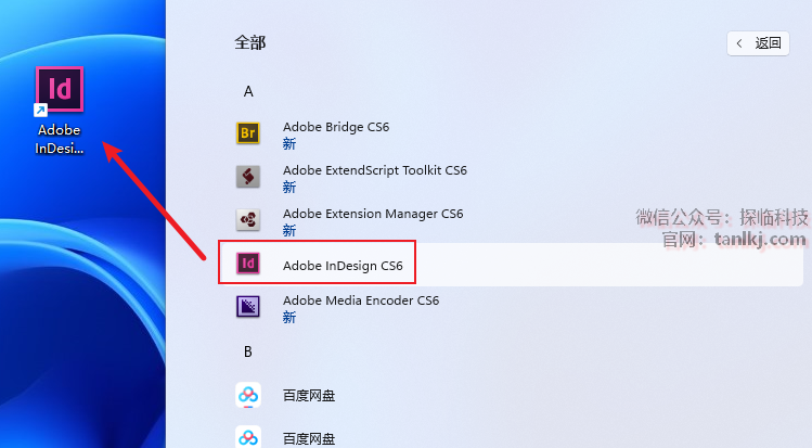 找到软件【Adobe InDesign CS6】,将其拖至桌面创建快捷方式。