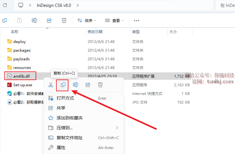 打开之前解压后的文件夹,复制文件【amtlib】。