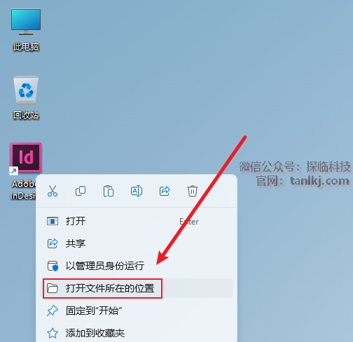 在桌面,右键软件【Adobe InDesign CS6】,点击【打开文件所在的位置】。