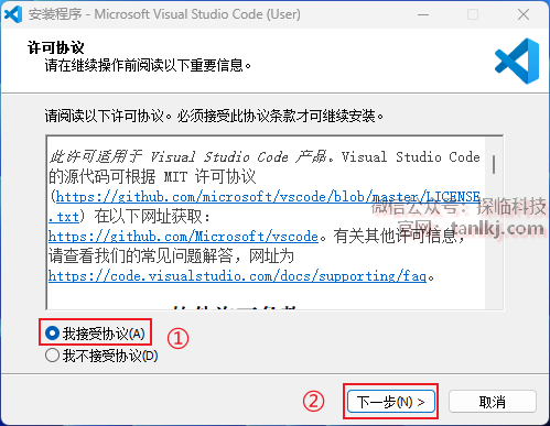 ①勾选【我接受协议】;