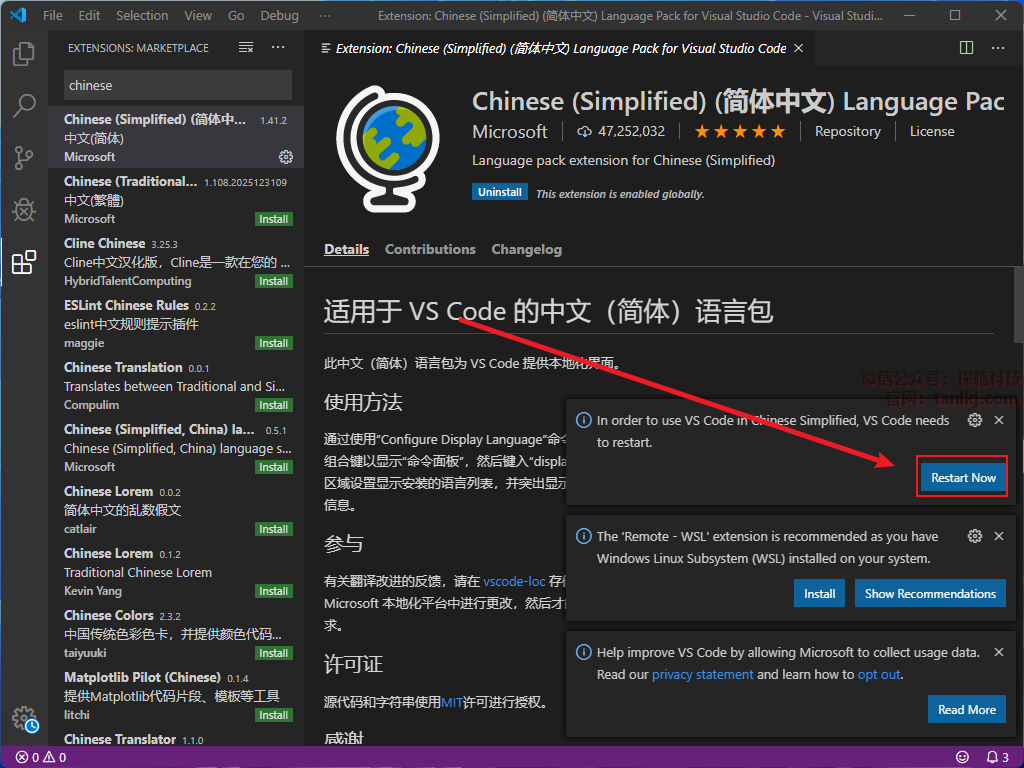 点击右下角的【Restart Now】。