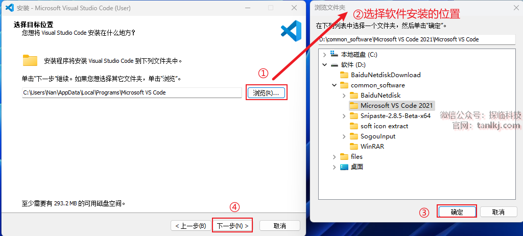 ②选择软件安装的位置,安装路径中不能包含任何中文字符