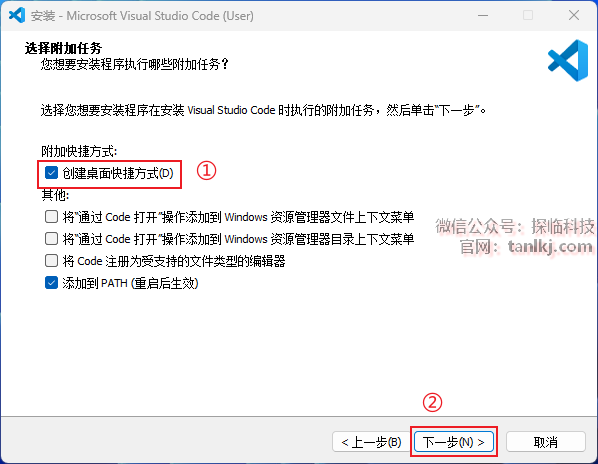 ①勾选【创建桌面快捷方式】;