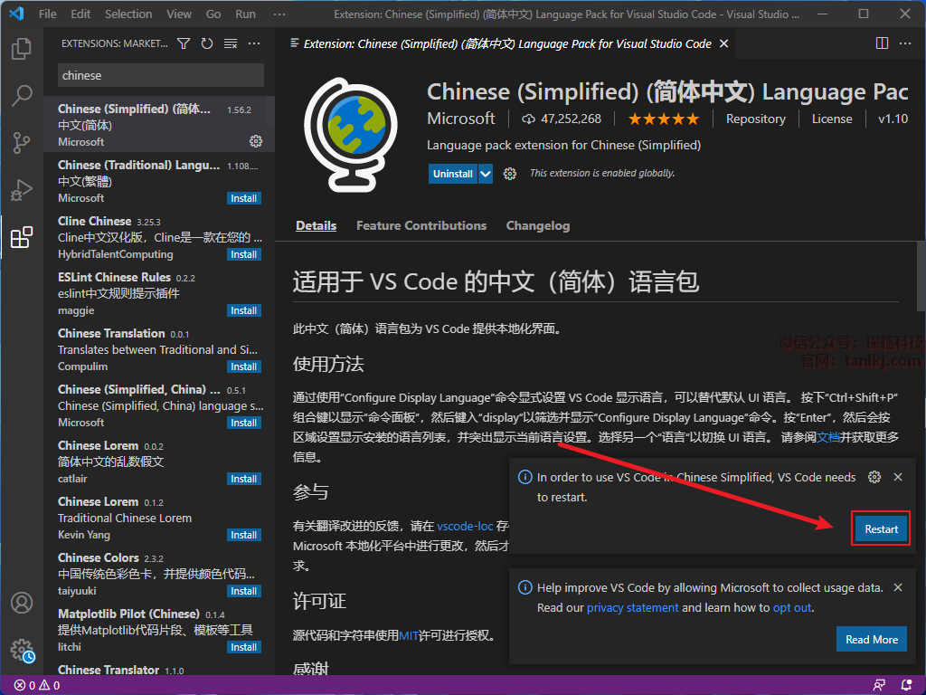 点击右下角的【Restart】。