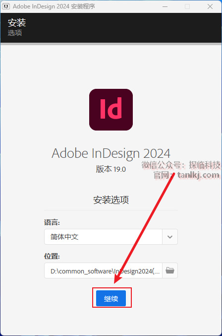 更改软件默认的安装位置,如不需更改,直接点击【继续】即可。
