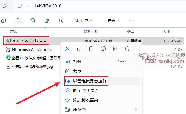 打开解压后的文件夹,右键程序【2016LV-WinChn】,点击【以管理员身份运行】。