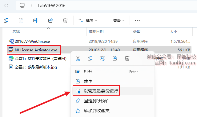 回到之前解压后的文件夹中,右键程序【NI License Activator】,点击【以管理员身份运行】。