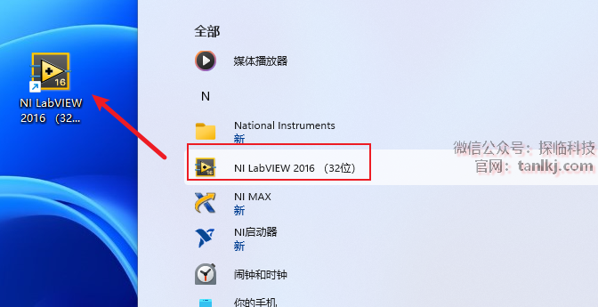 找到软件【NI LabVIEW 2016】,并将其拖至桌面创建桌面快捷方式。