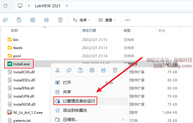 打开解压后的文件夹,右键程序【Install】,点击【以管理员身份运行】。