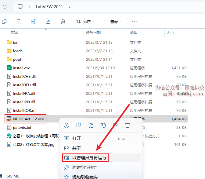 回到之前解压后的文件夹中,右键程序【NI_Lic_Act_1.2】,点击【以管理员身份运行】。