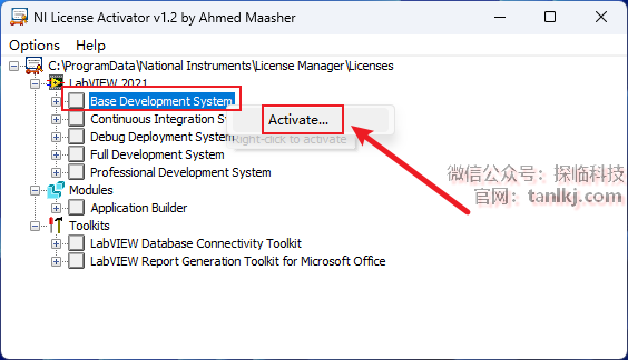 右键【Base Development System】,点击【Activate…】。