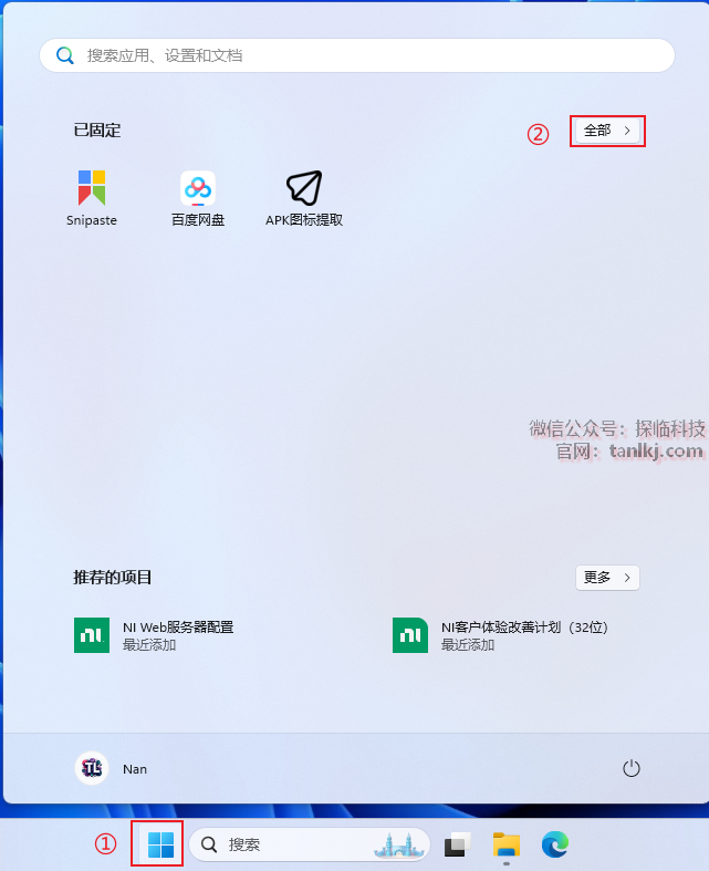 ①点击【开始】图标;