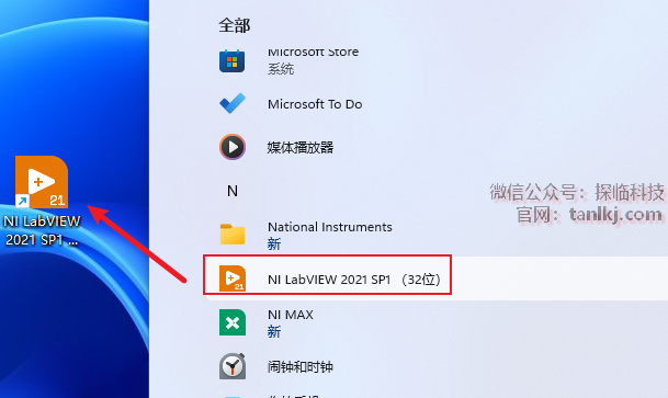 找到软件【NI LabVIEW 2021】,并将其拖至桌面创建桌面快捷方式。
