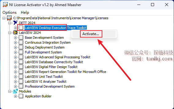 右键【LabVIEW Desktop Execution Trace Toolkit】,点击【Activate…】。