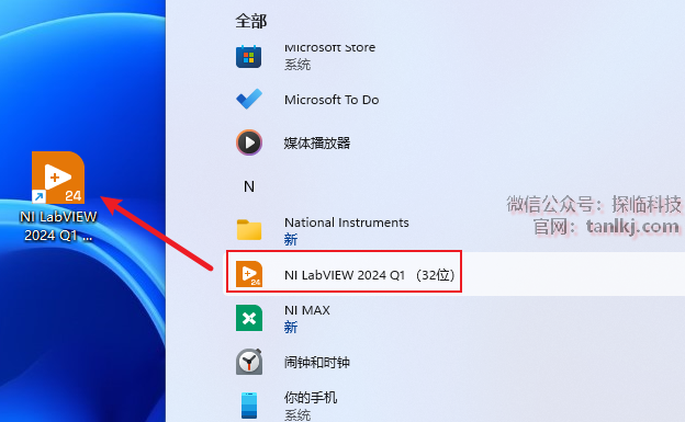 在桌面,双击运行软件【NI LabVIEW 2024】。