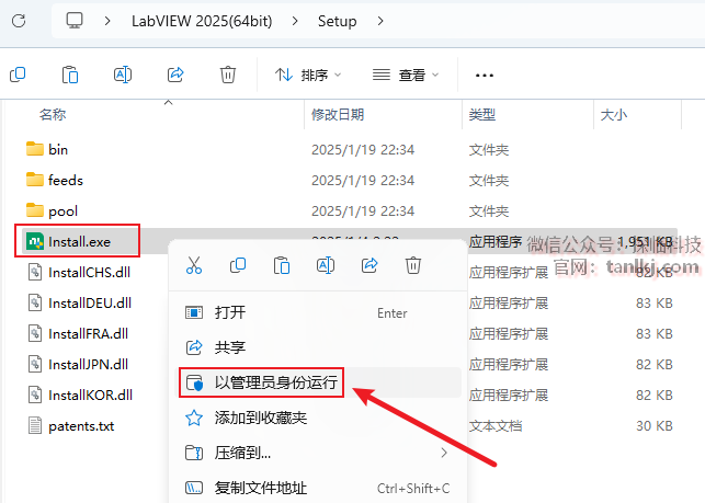 右键程序【Install】,点击【以管理员身份运行】。