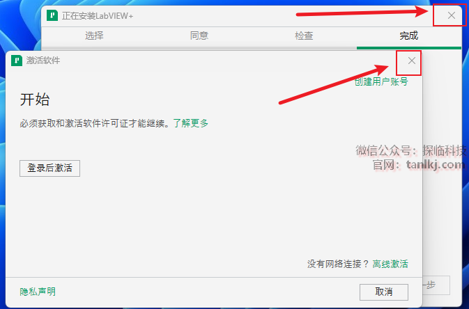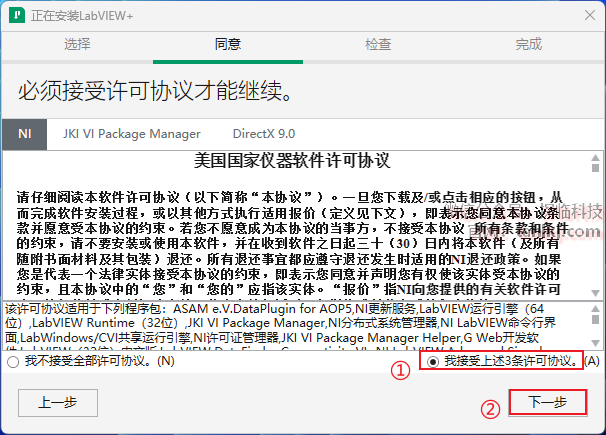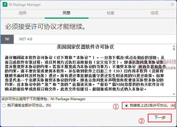 ①勾选【我接受上述2条许可协议】;